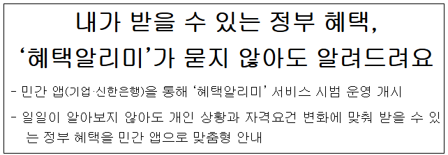안녕하세요! 오늘은 정부 지원 혜택을 똑똑하게 챙기는 방법인 ‘혜택알리미’에 대해 알려드립니다.