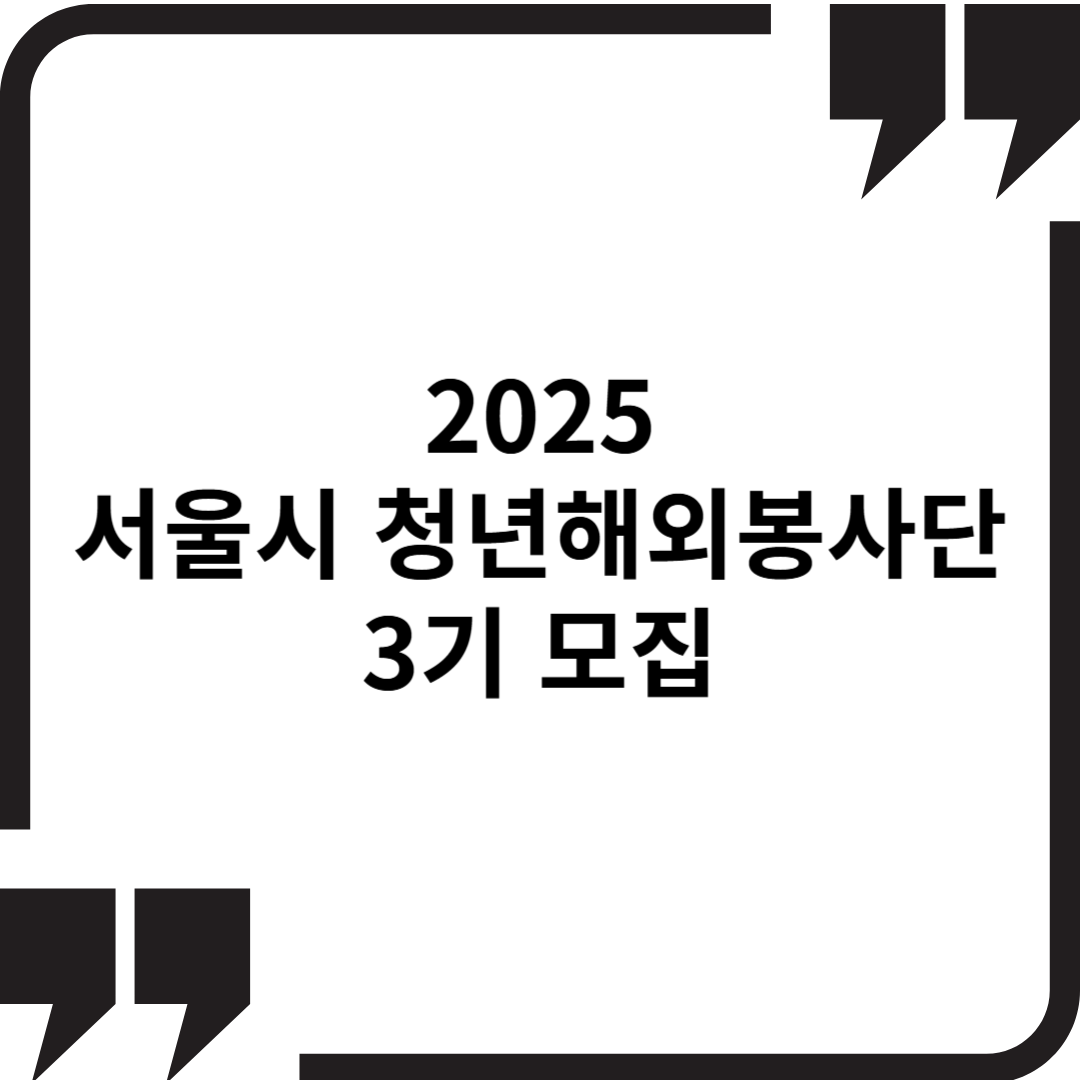 서울시가 주관하는 2025년 서울시 청년해외봉사단 3기 모집이 시작되었습니다. 글로벌 역량을 키우고 국제사회에 기여할 수 있는 뜻깊은 기회인 이번 해외봉사단은 청년들에게 자기성장, 해외경험, 국제 협력 활동을 제공하는 프로그램입니다.