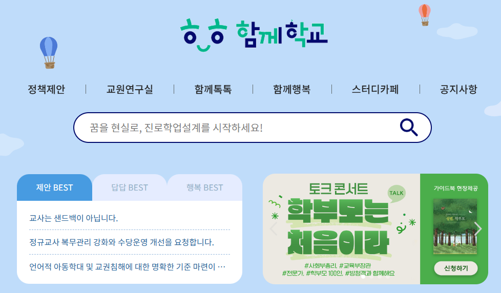 교육부에서는 ‘함께학교’라는 플랫폼을 운영 중입니다.